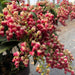 Bright Pink shoots every time they flush new growth. Sage green variegated foliage. Covered in white flowers early spring