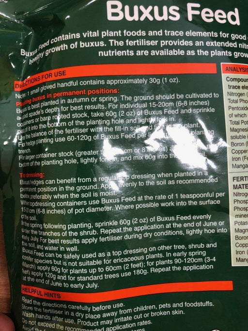 View full detailsBuxus Feed is part of Vitax’s new specialist fertiliser and feed range, and developed specifically for Buxus growers.A staple for most gardens, Bux...