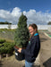 Compact evergreen conifer with striking silvery-blue foliage and a dense pyramidal shape