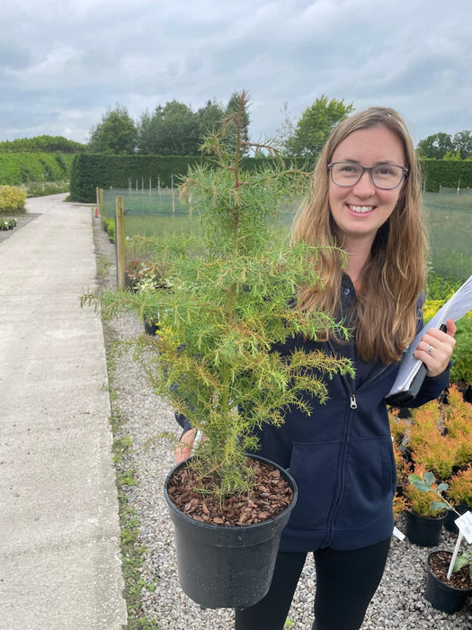 Soft, Feathery Foliage – The fine, needle-like leaves of this conifer create a soft, airy texture that adds elegance and movement to the garden, especially in the wind.