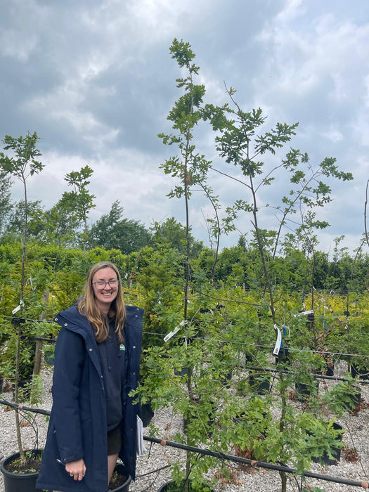 Quercus robur, or the English Oak, is a magnificent tree celebrated for its size, longevity, and ecological significance. Its stunning lobed leaves, beautiful acorns, and thick, rugged bark make it a valuable addition to UK landscapes. With minimal maintenance required and high resilience to pests and diseases, it is an excellent choice for gardens, parks, and natural spaces, providing shelter and food for wildlife while enhancing the beauty of the environment.
